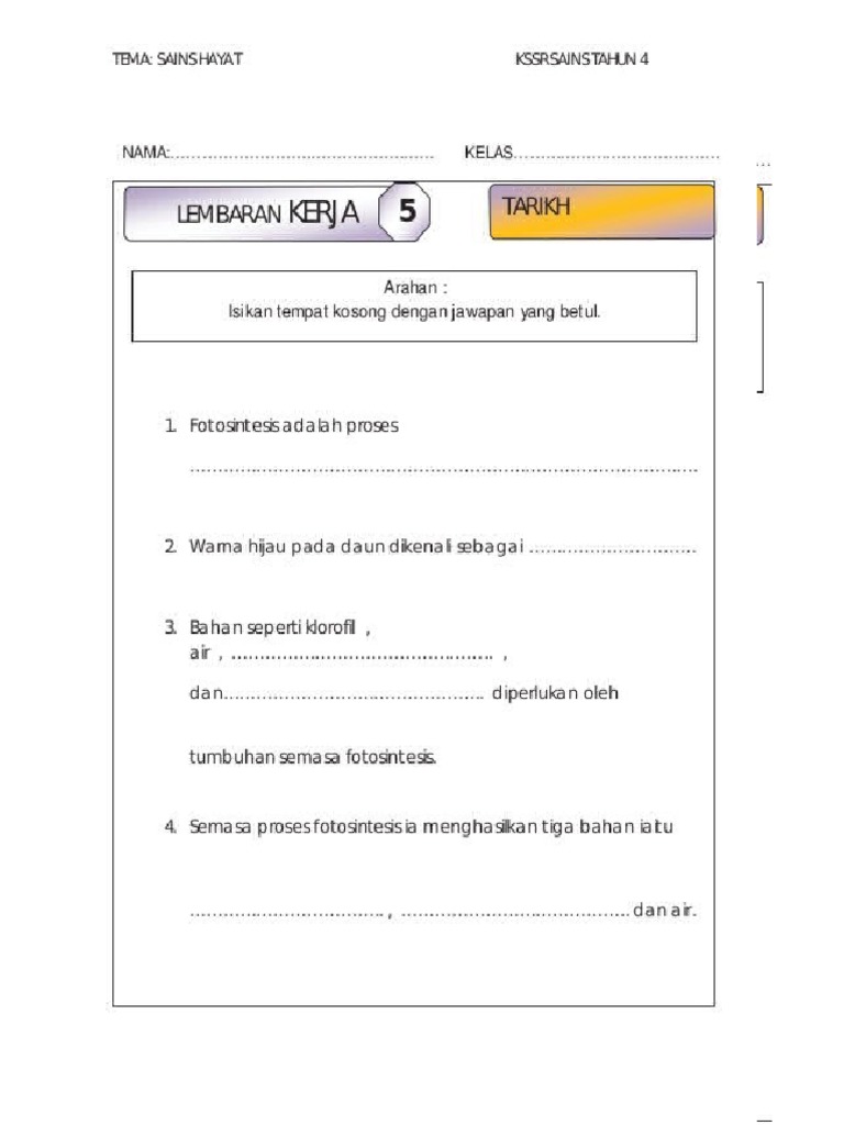 Tulis dengan menggunakan pensil pada ruangan yang disediakan 4. Section a bahagian a answer all the questions. Berikut ialah latihan sains tahun 4. Apakah keperluan tumbuhan untuk menjalankan proses fotosintesis?