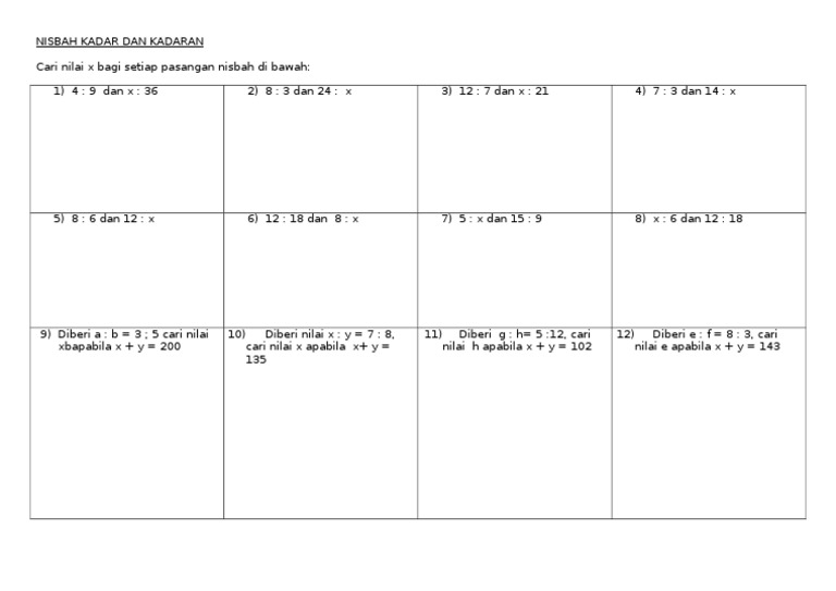 Soalan Nisbah Tingkatan 1. Pra pt3,soalan akhir tahun matematik tingkatan2 via. Beri jawapan anda dalam bentuk termudah.