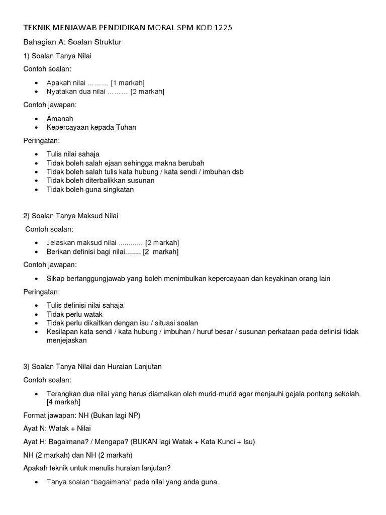 Teknik menjawab soalan peperiksaan pendidikan moral spm. Nilai yang ditulis mesti betul dari segi ejaan dan susunan kata. P.moral johor spm trial 2008 edu.joshuatly.com.pdf. If you continue browsing the site, you agree to the use of cookies on this website.