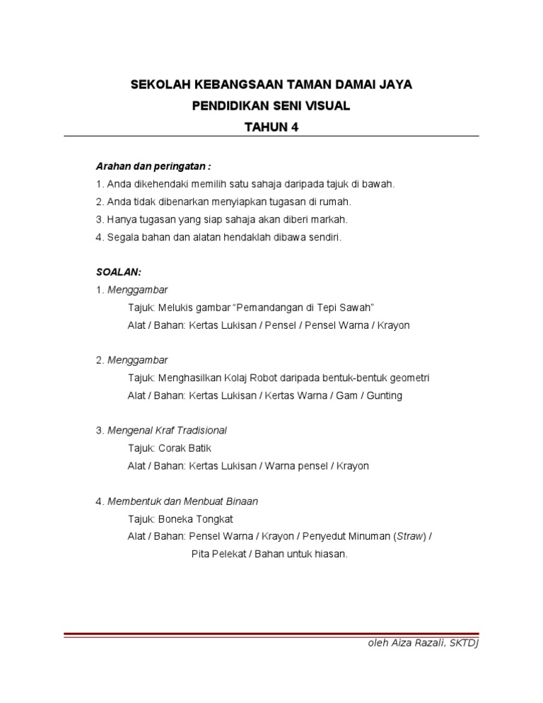 Soalan pendidikan seni visual soalan pendidikan seni visual tahun 4 arahan 1.