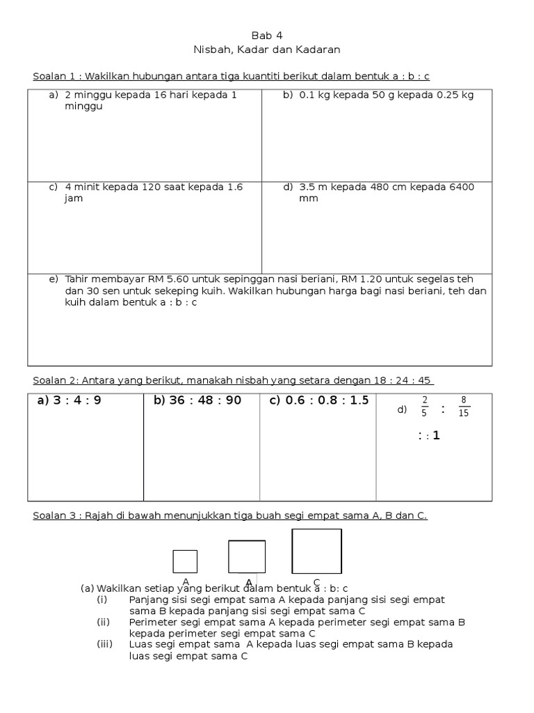Kssm Matematik Tingkatan 1 Bab 4 Nisbah Kadar Dan Kadaran Mahir Diri 4 5 No1 No3 Buku Teks Form 1 Youtube from i.ytimg.com Jul 17, 2013 · 4.2.2 nisbah, kadar dan kadaran, praktis berformat pt3. Dalam satu kempen menjual kemeja t untuk hari merdeka memperoleh sejumlah keuntungan, rm x. B nisbah setara contoh 3: