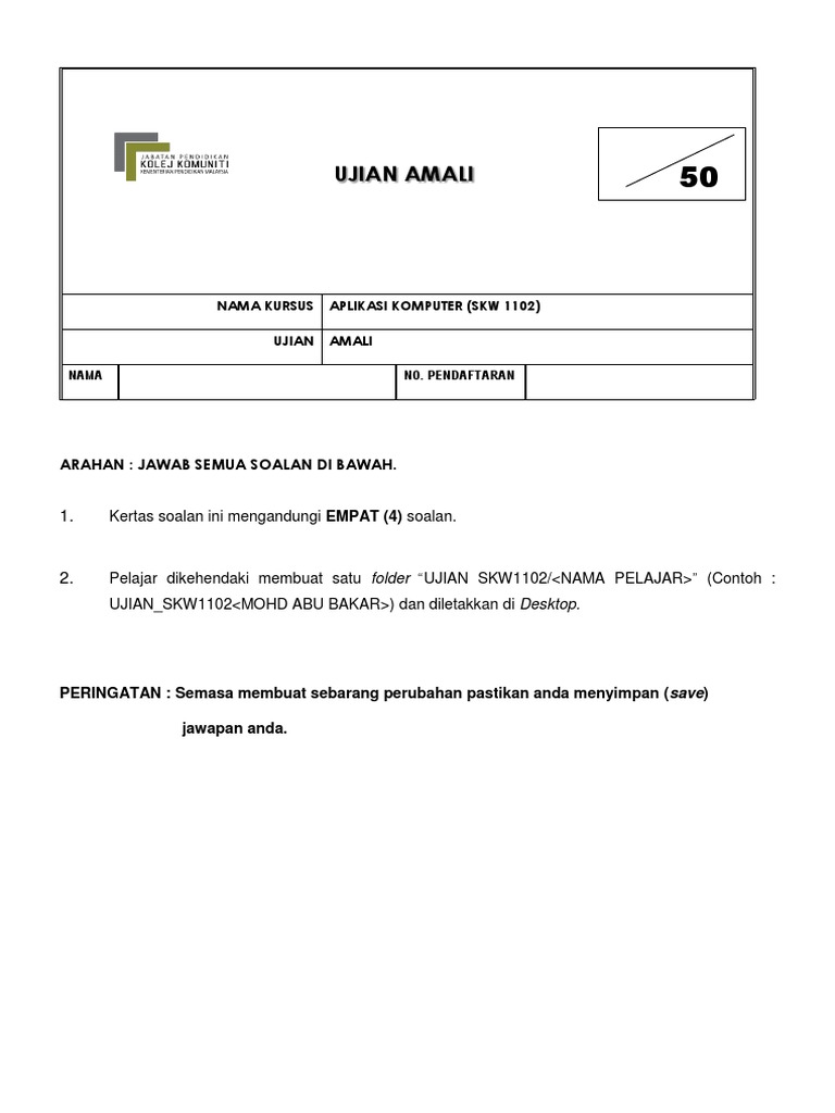 50 Soalan Ujian Komputer. Bahagian b sebanyak 25 soalan. Disini kami kongsikan soalan untuk anda membuat ulangkaji sekiranya selepas anda perlu menjalani ujian ini selepas ini.boleh klik setiap slide untuk lihat setiap contoh soalan.