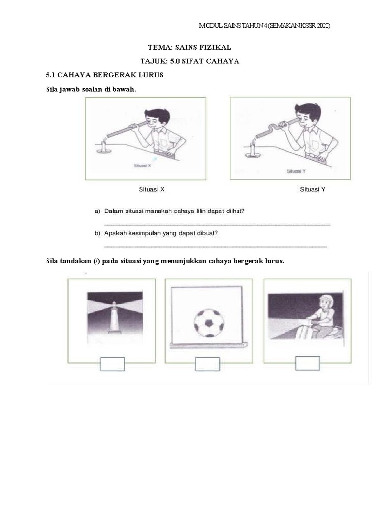 Soalan Latihan Cahaya Bergerak Lurus Tahun 4