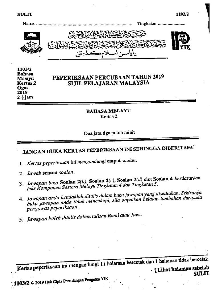 Soalan 3 Pengetahuan Dan Kemahiran Bahasa 1103/2 Jawapan. 1 jam 30 minit] pilih satu daripada soalan di bawah ini dan tulis sebuah karangan yang panjangnya lebih daripada 350 patah perkataan. Semangat patriotik dalam kalangan murid semakin luntur.