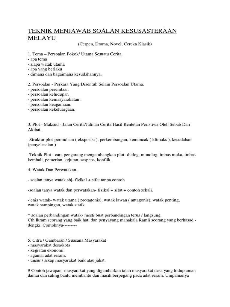 Soalan 7 Petikan Sastera. Bermula dari tahun 2021, soalan komsas dalam kertas bahasa melayu spm telah berubah selaras dengan pelaksanaan kssm. Pemahaman (35 markah) soalan 7 :
