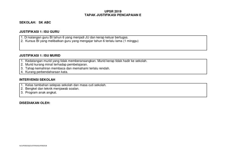 Contoh Tapak Justifikasi Pencapaian E Upsr 2018 Pdf