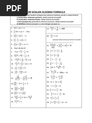 Contoh soalan dan jawapan Algebra. Home destisuryak Soalan Dan Jawapan Algebra. Bab 4 nisbah kadar dan kadaran bab 5 ungkapan algebra bab 6 persamaan linear bab 7 ketaksamaan linear bab 8 garis dan sudut bab 9 poligon asas bab 10 perimeter dan.
