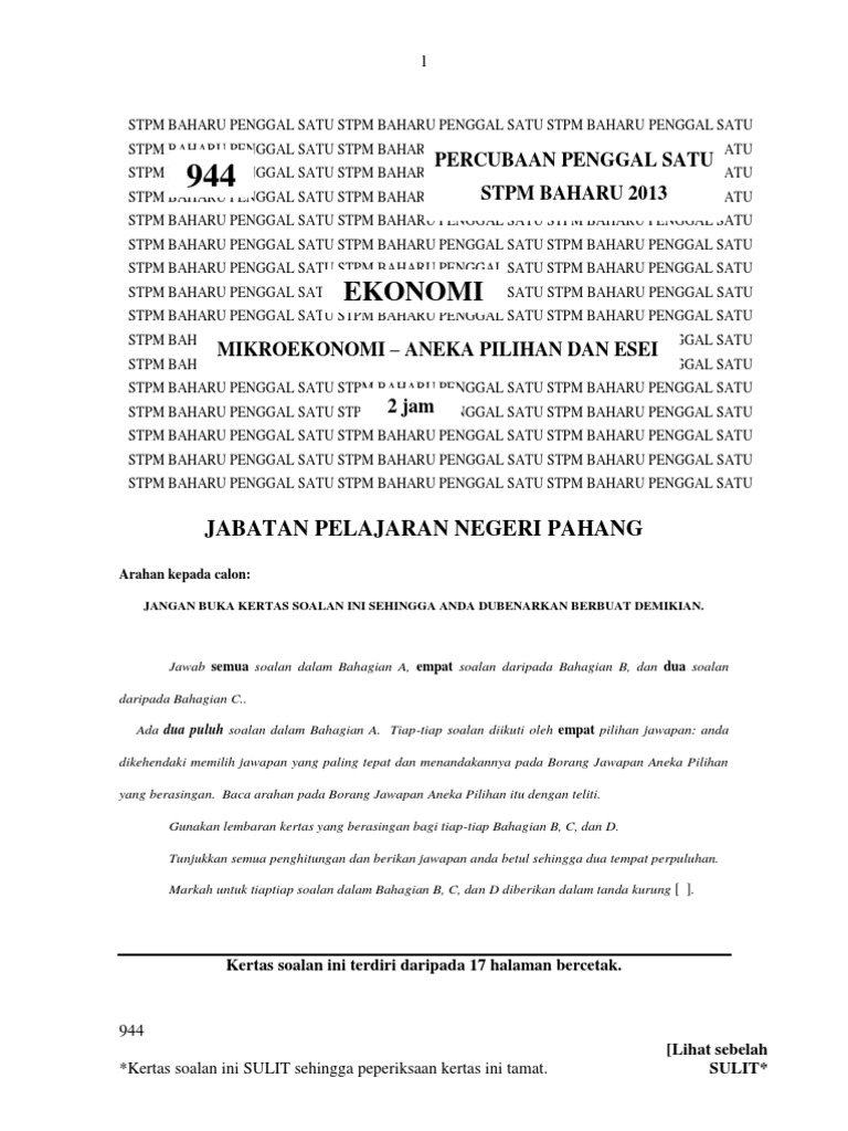 Percubaan Stpm Baharu 2012 2013 Soalan Ekonomi Penggal 1 Pdf
