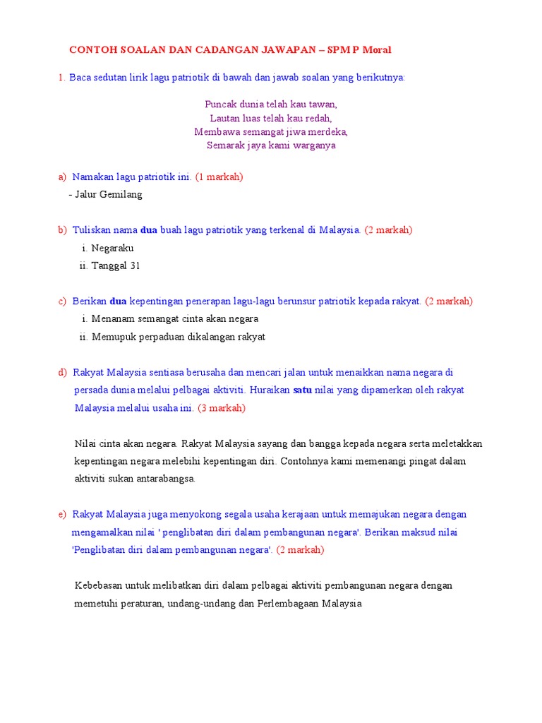 Contoh Soalan Dan Cadangan Jawapan Pmoral Spm
