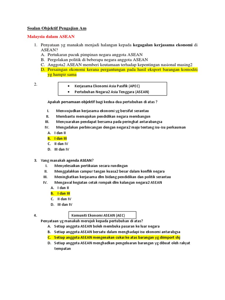 Soalan Objektif Pengajian Am Asean Pdf