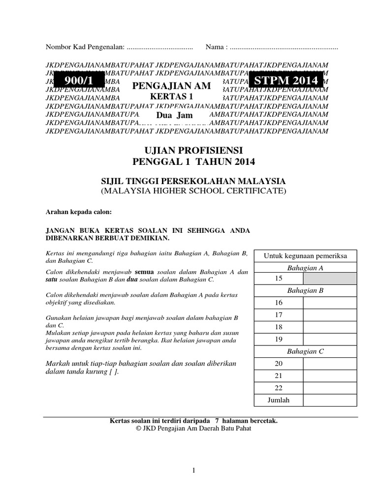 Ujian Pa Penggal 1 Stpm 2018 Pdf