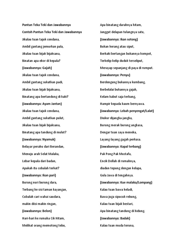Pantun Teka Teki Dan Jawabannya Pdf