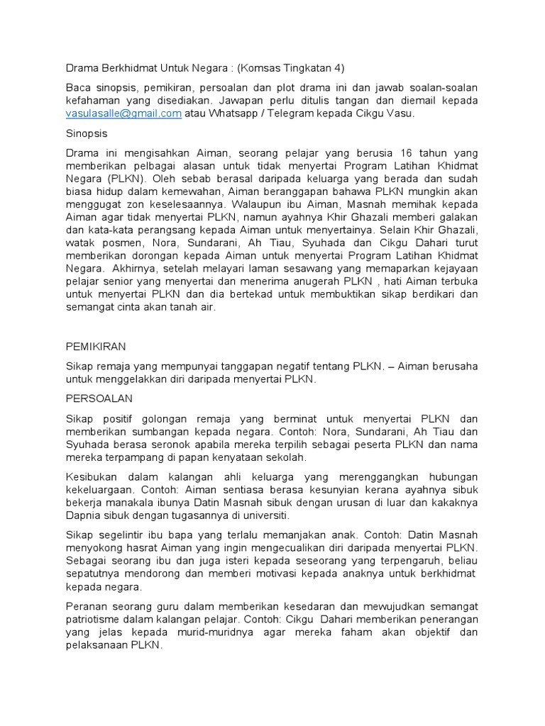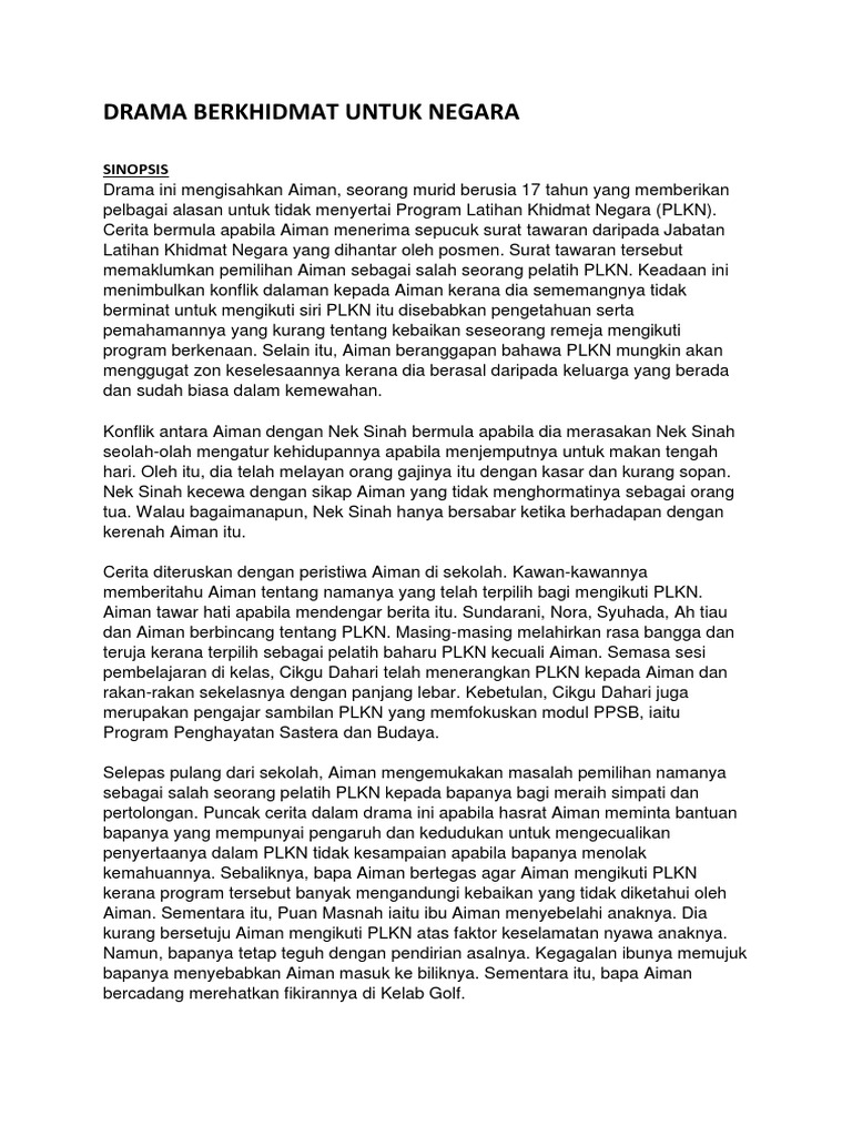 Drama Berkhidmat Untuk Negara Docx Komsas Tingkatan 4 Drama Tajuk Berkhidmat Untuk Negara Sinopsis Drama Ini Mengisahkan Aiman Seorang Pelajar Yang Course Hero