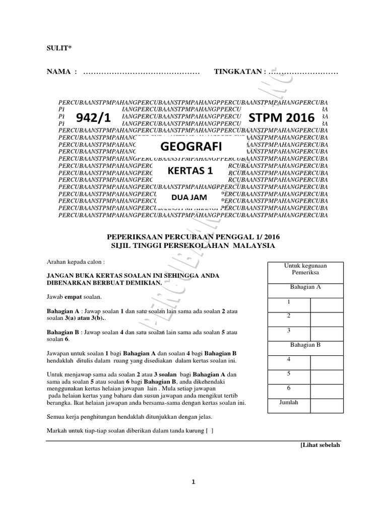Percubaan Stpm Pahang 2011 Soalan Geografi Fizikal Kertas 1 Pdf