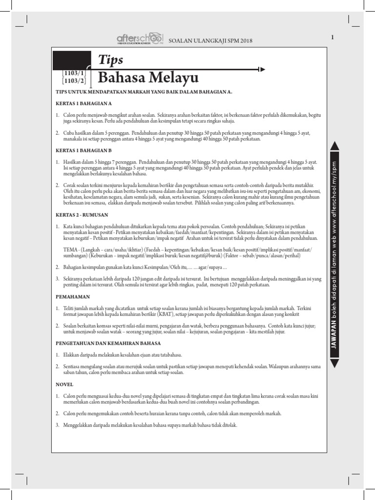 Laman Bahasa Melayu Spm Soalan Kertas Bahasa Melayu 2 1103 2 Spm 2018