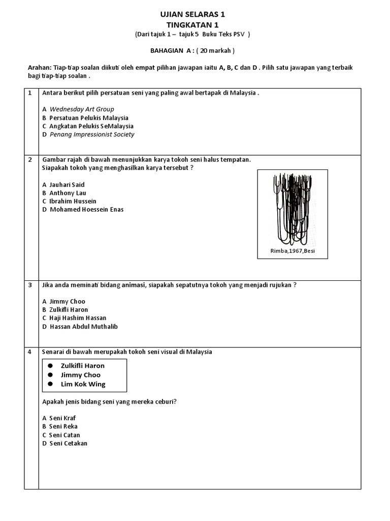 Contoh Soalan Ujian 1 Psv Tingkatan 4 Pdf