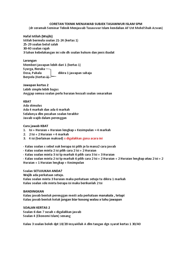 Coretan Teknik Menjawab Subjek Tasawwur Islam Spm Pdf