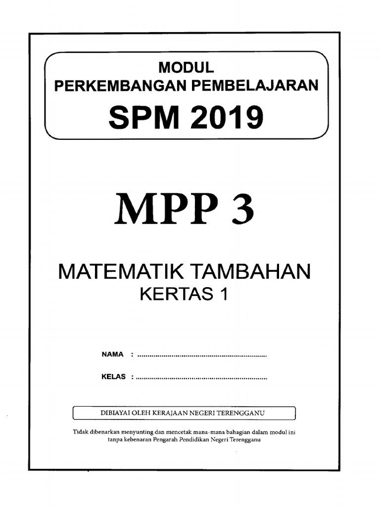 Kertas Soalan Sebenar Matematik Tambahan Spm 2019 Tersoal M