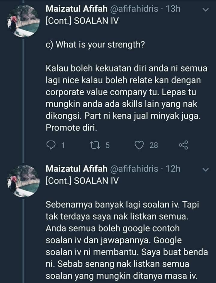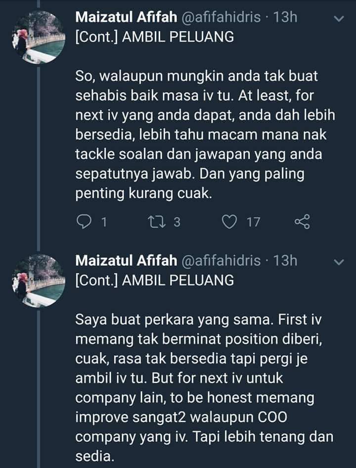 Resume Kreatif On Twitter Tips Habis Je Belajar Terus Dapat Interview Kredit Afifah Idris