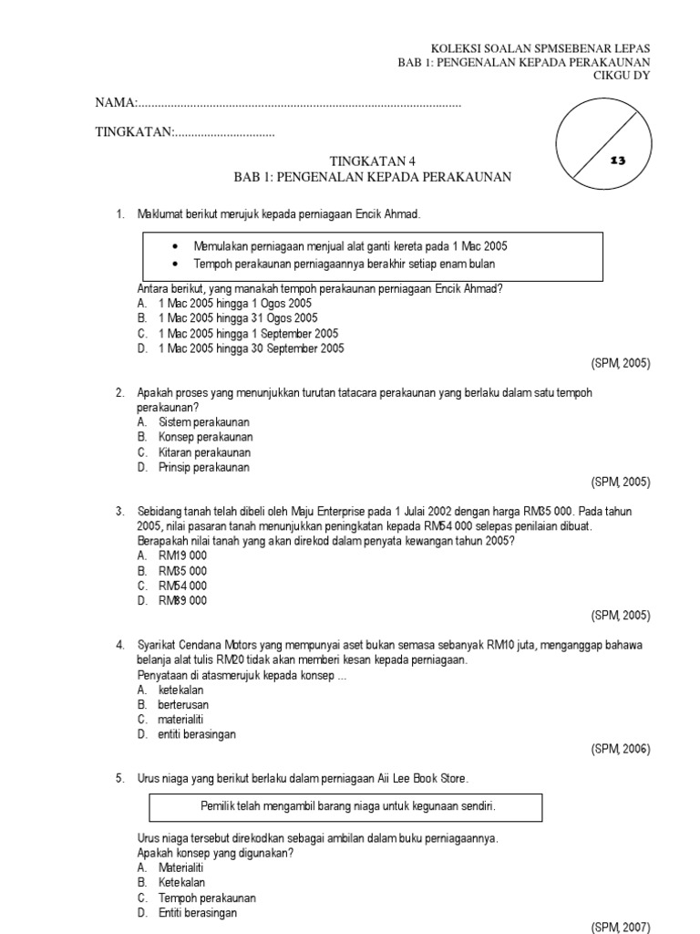 Contoh Soalan Prinsip Perakaunan Tingkatan 4 Awal Tahun Helowinr
