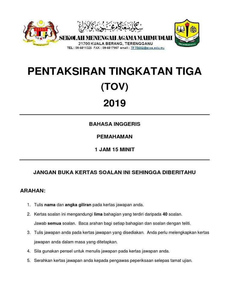Bi Pt3 Tov 2019 Kertas 1 Pdf Human Impact On The Environment Earth