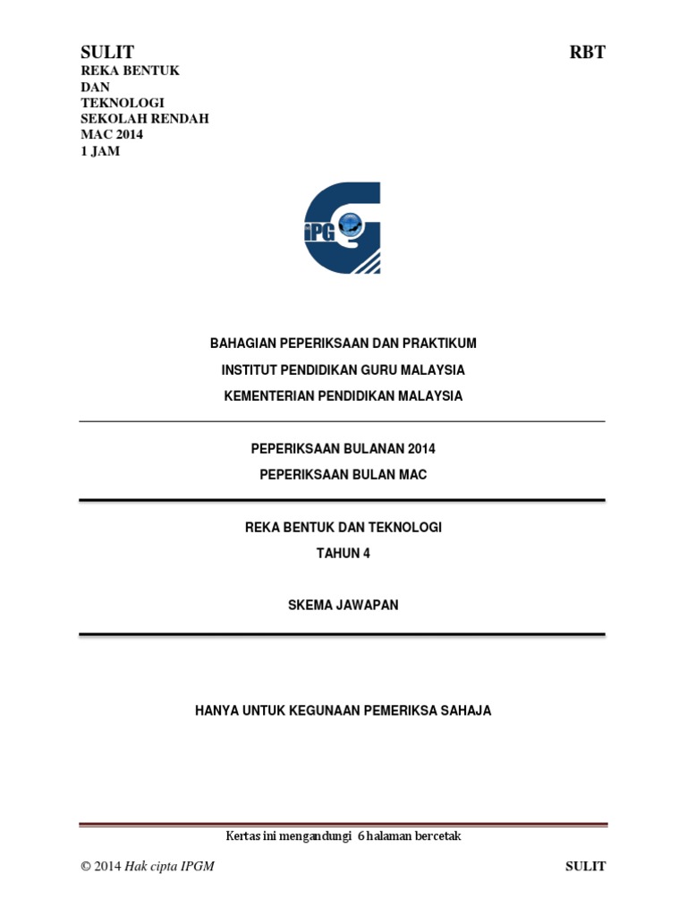 Ujian 2014 Reka Bentuk Teknologi Rbt Tahun 4 Pdf