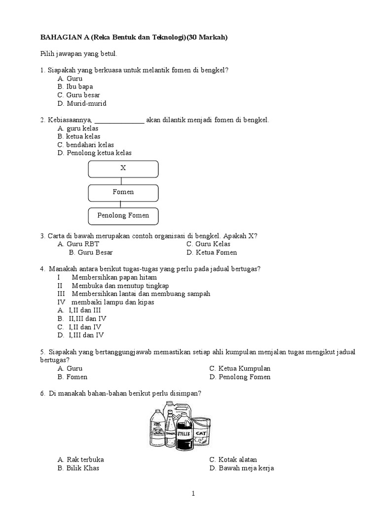 Pentaksiran sumatif 1 reka bentuk dan teknologi tahun 4bahagian a20 markahjawab semua soaa tahun 4bahagian b30 markahjawab semua soaa.