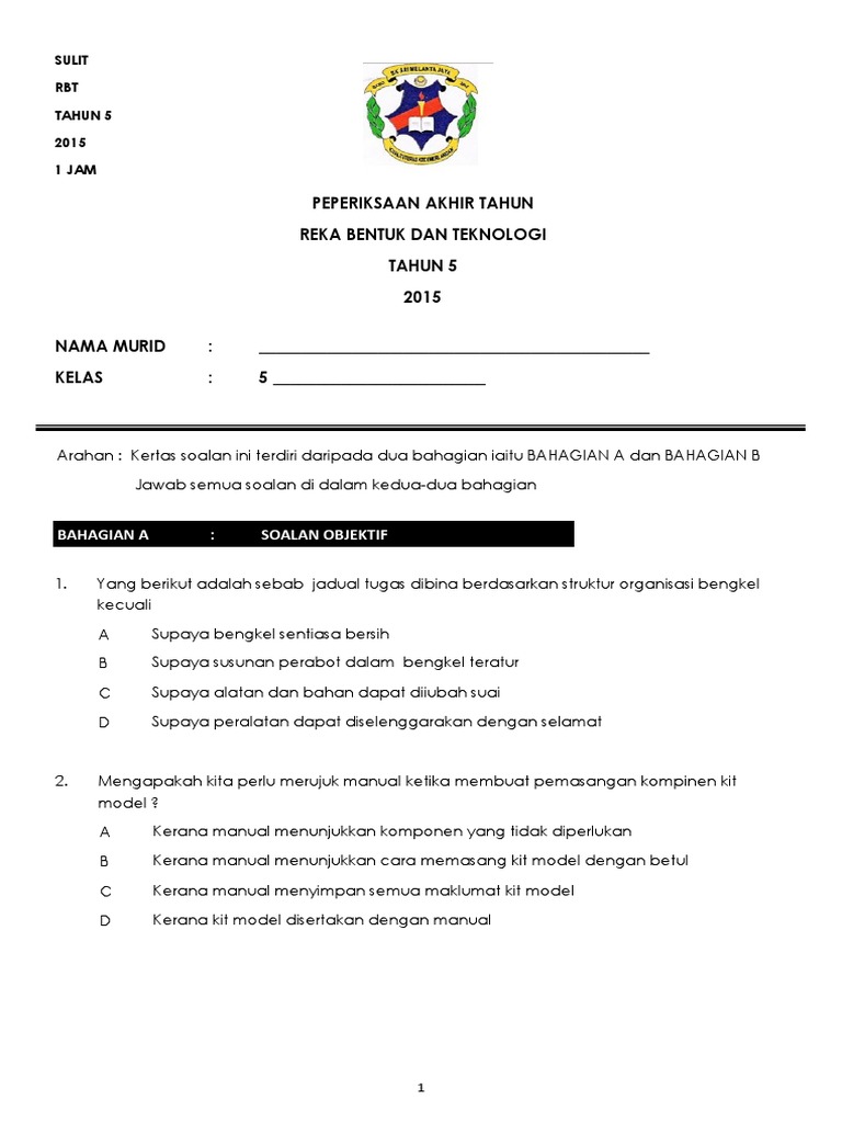 Soalan Rbt Tahun 5 Asas Teknologi 1 Pdf