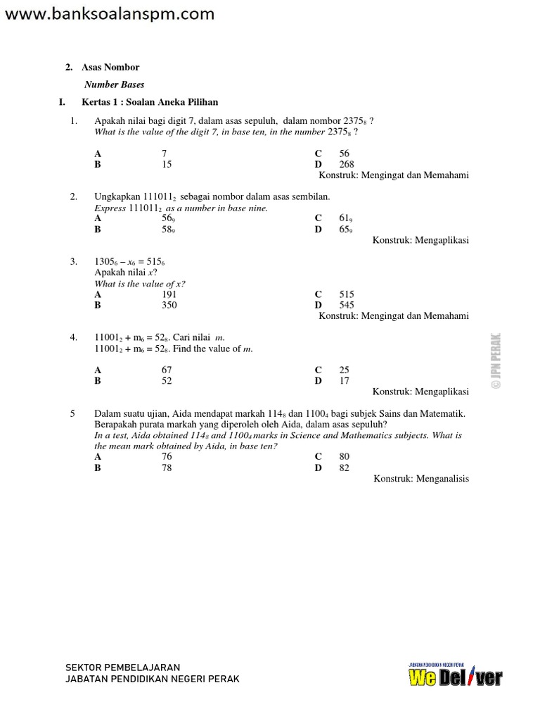 ASAS NOMBOR Number Bases Kertas 1 SPM 2 soalan 2markah BIL SUBTAJUK ms 11 Nombor Dalam Asas Dua 1 12 Nombor Dalam Asas Lapan 4 13 Nombor Dalam Asas Lima 5 14 Menukar Nombor Dalam Asas Sepuluh Ke Asas Dua Lapan atau Lima 7 15 Menukar Mana-mana Di Antara Nombor Dalam Asas Dua Lapan atau. 11 contoh soalan dan jawapan temuduga ini merupakan himpunan pengalaman daripada mereka yang pernah hadir dalam saya ridzuan bin loqman.