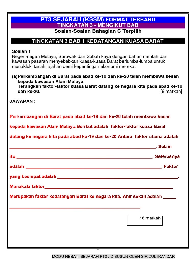 2019 Pt3 Sejarah Contoh Soalan Jawapan Unit Penting Berdasarkan Bab Pdf