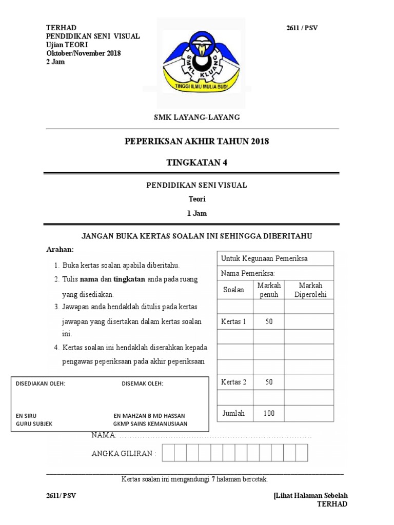 Contoh Soalan Pt3 Sejarah Tingkatan 3. Koleksi Kertas Soalan Peperiksaan Percubaan Pendidikan Seni Visual PSV SPM 2020 2019 2018 2017 Skema Jawapan.